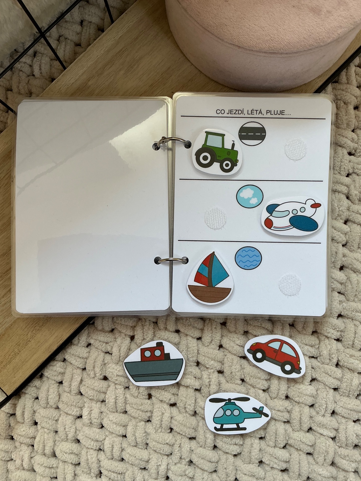 Co najdete uvnitř? 10 zalaminovaných stran A6, různé aktivity na suchý zip, pevné provedení, které vydrží i časté používání.